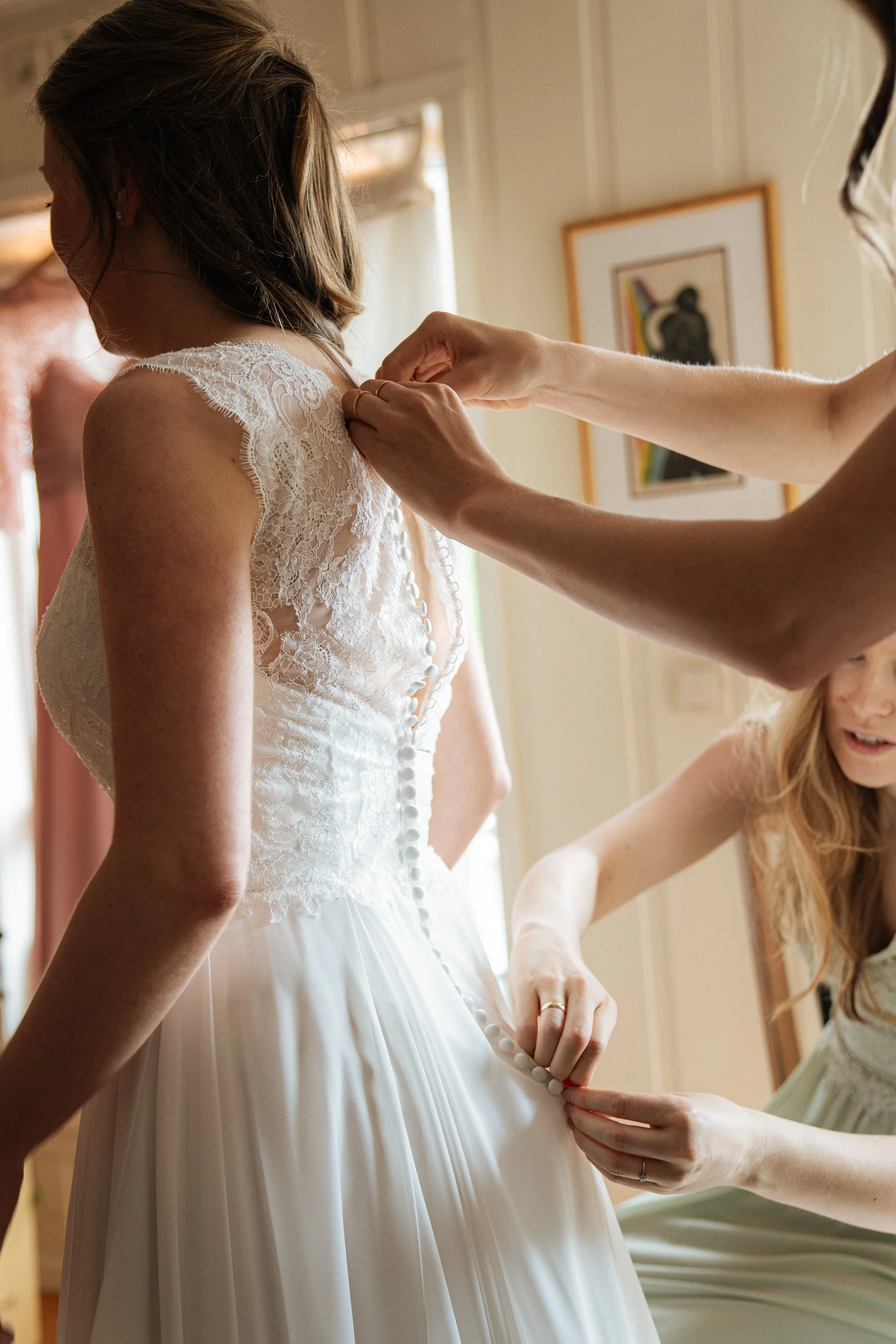 Historien kan begynne allerede før vielsen. Jeg liker å være med fra dere gjør dere klare – når kjolen henges opp, mansjettknappene kneppes, håret danderes og nervene bygger seg opp.